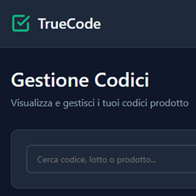 TrueCode è un sistema digitale per la verifica autenticità dei prodotti tramite codice univoco, progettato dalla nostra web agency per aiutare aziende manifatturiere, brand e produttori a contrastare fenomeni di contraffazione.